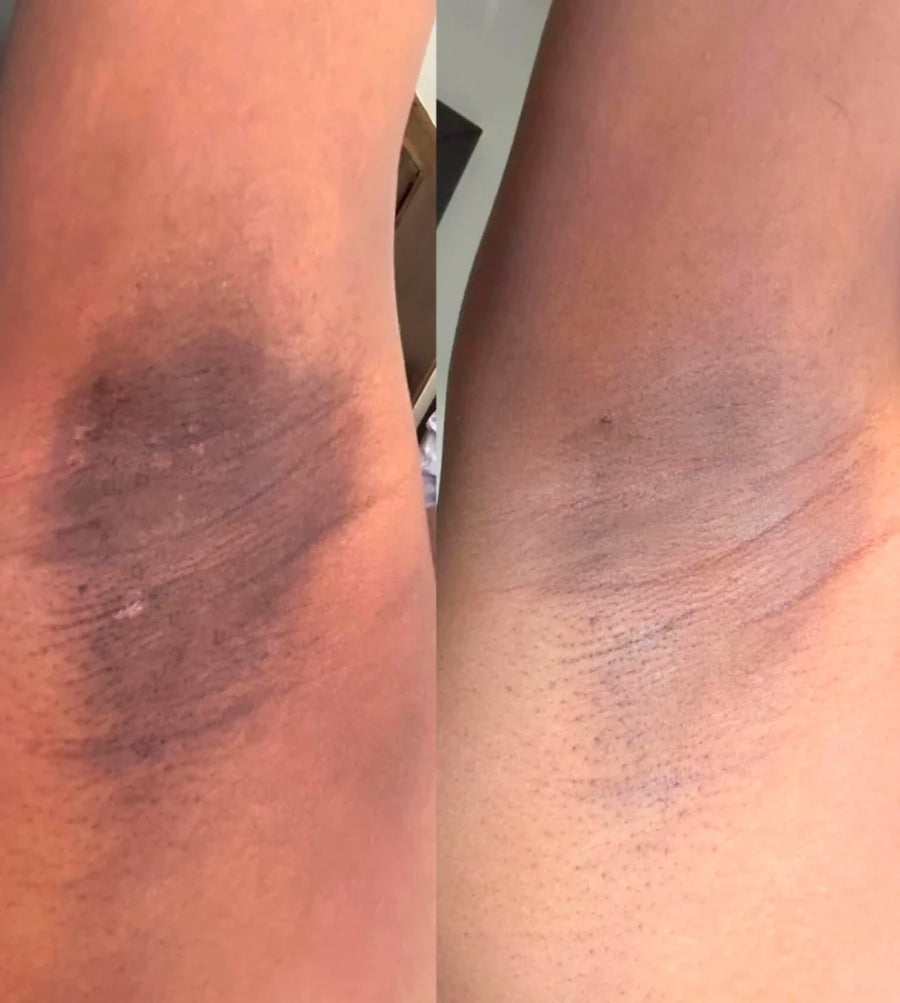 Éclaircit les taches et réduit l’apparence des zones sombres comme les aisselles, l’aine, les coudes et les genoux.